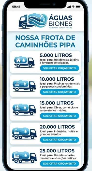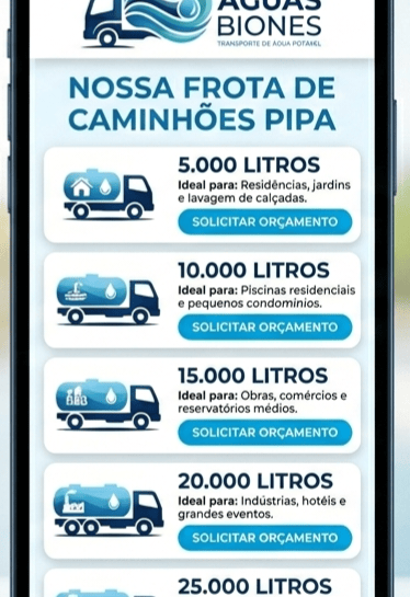Caminhões pipa saindo imediatamente para garantir água na sua casa ou empresa.
